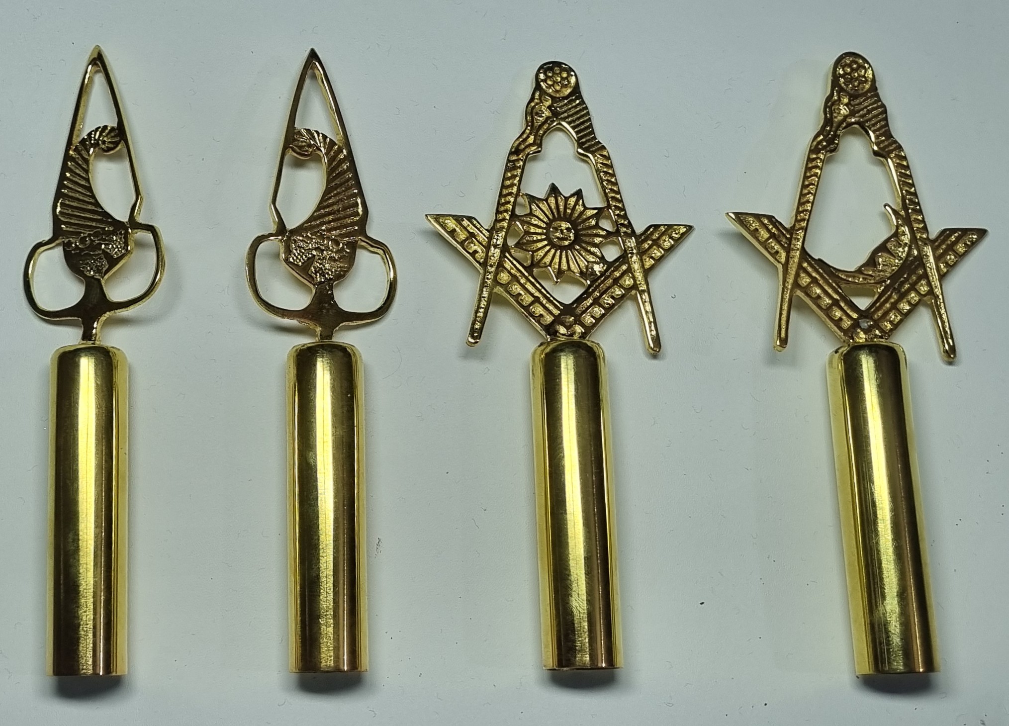 Masonic Regalia Pole Topper, Blue Lodge Rods & TOPS Gold Set of 4 pieces