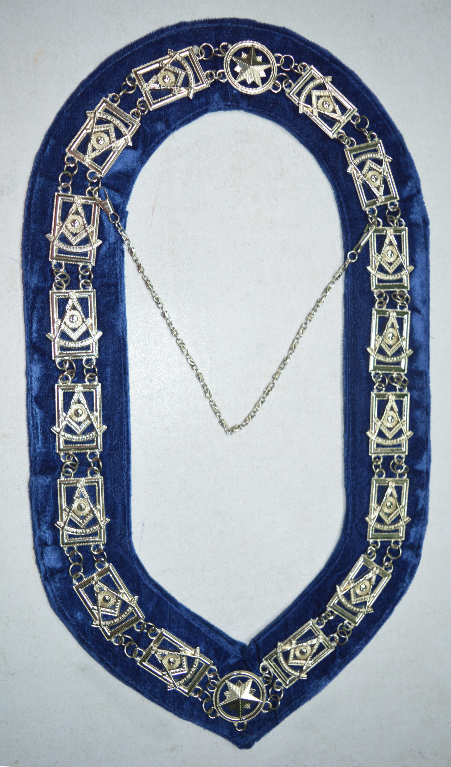 Masonic Past Master Silver Chain Collar Blue Backing