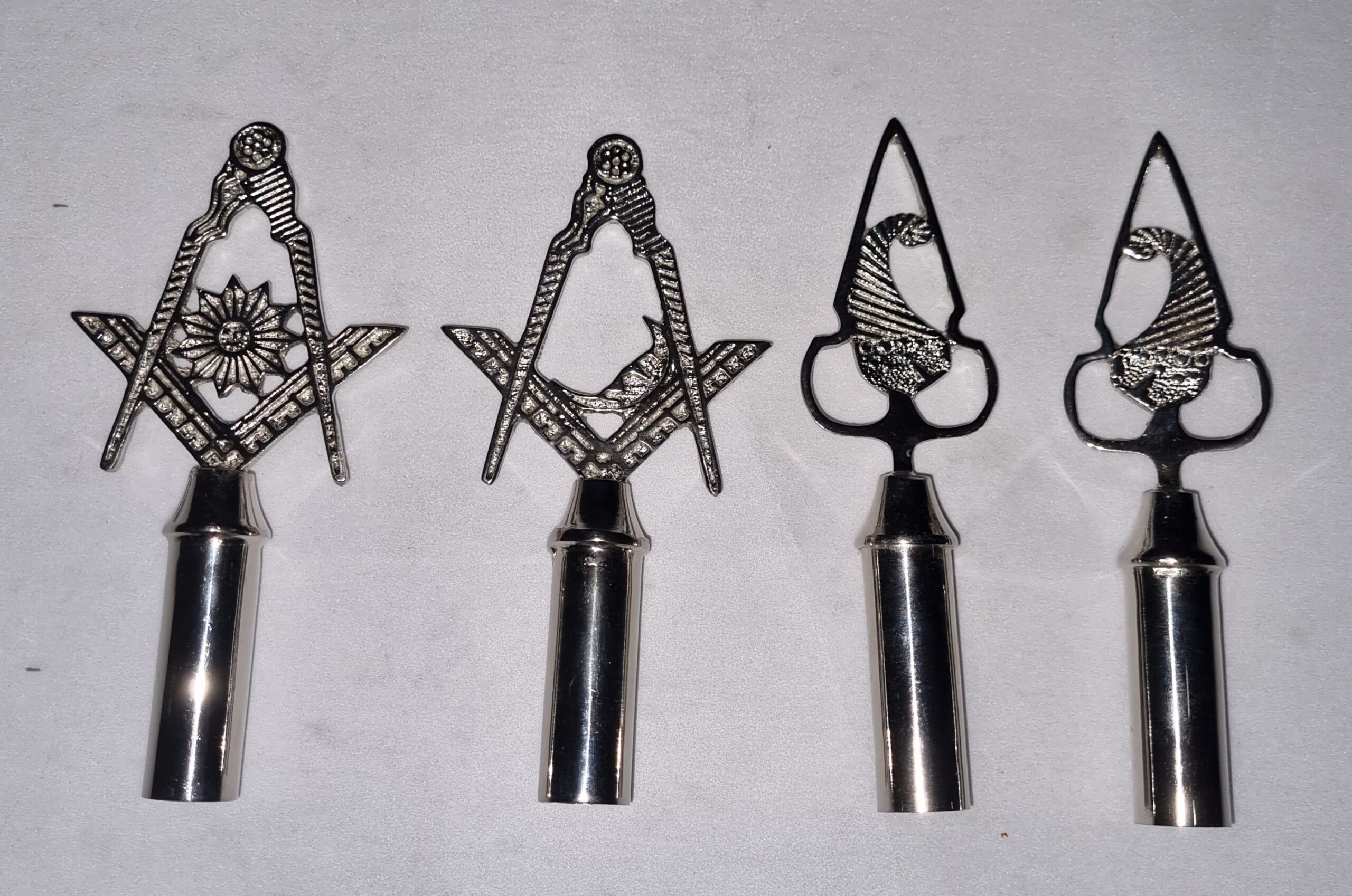Masonic Regalia Pole Topper, Blue Lodge Rods & TOPS Silver Set of 4 pieces